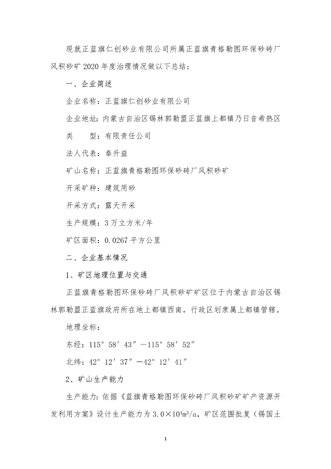 正藍(lán)旗青格勒圖環(huán)保砂磚廠風(fēng)積砂礦 2020年度治理總結(jié)