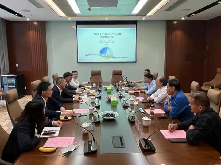會議開始,仁創(chuàng)科技集團設(shè)計院院長李張飛詳細介紹我司在“以砂興水、以砂興農(nóng)、以砂建筑”三大領(lǐng)域三十年來的創(chuàng)新、探索、實踐與成果。