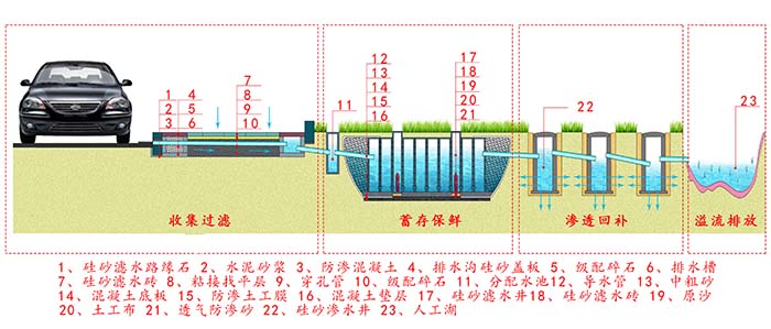 建海綿城市就要有“海綿體”。城市“海綿體”既包括河、湖、池塘等水系,也包括綠地、花園、可滲透路面這樣的城市配套設施。雨水通過這些“海綿體”下滲、滯蓄、凈化、回用,最后剩余部分徑流通過管網(wǎng)、泵站外排,從而可有效提高城市排水系統(tǒng)的標準,緩減城市內(nèi)澇的壓力。