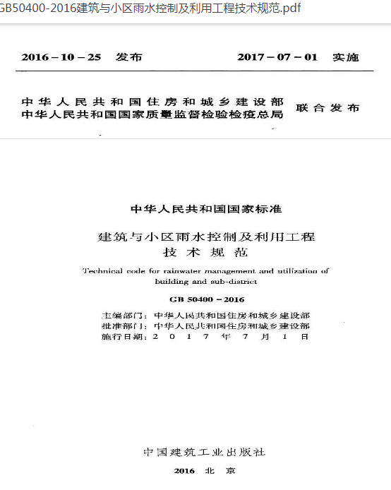 《建筑與小區(qū)雨水利用工程技術(shù)規(guī)范》