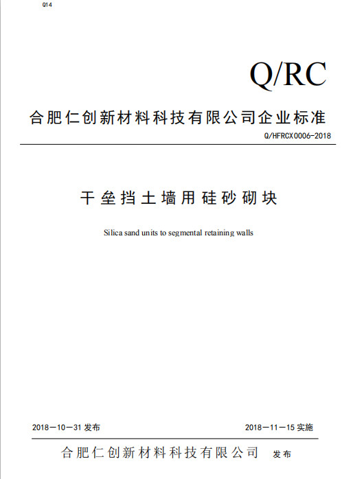 《干壘擋土墻用硅砂砌塊企業(yè)標(biāo)準(zhǔn)》