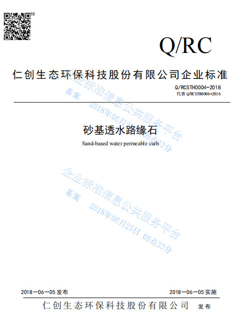 《砂基透水路緣石企業(yè)標(biāo)準(zhǔn)》