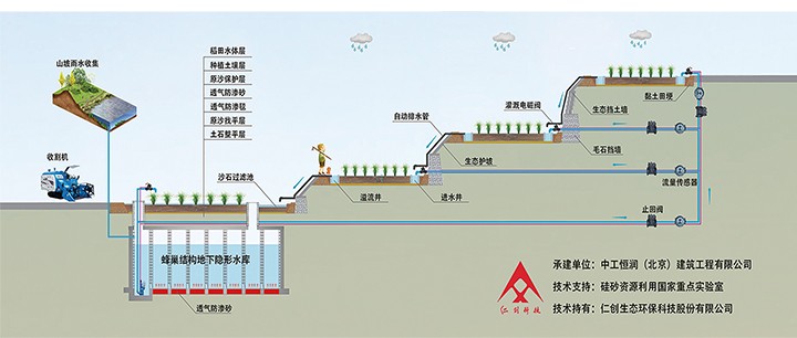 研究提出“以砂基透氣防滲材料構建生態(tài)犁底層”的應用機理,采用透氣防滲、透水濾水、蜂巢凈水三大創(chuàng)新技術,創(chuàng)建海綿土壤結構、生態(tài)綠色田坎、隱形蜂巢水庫、集雨循環(huán)灌溉、智能管控平臺五大系統(tǒng),形成“上田下庫”的生態(tài)海綿水田。具有節(jié)水、減排、保肥、保墑、生態(tài)六大特征,可將部分廢棄礦區(qū)、荒漠化土地、石漠化土地、低產(chǎn)旱地等墾造成高標準水田。